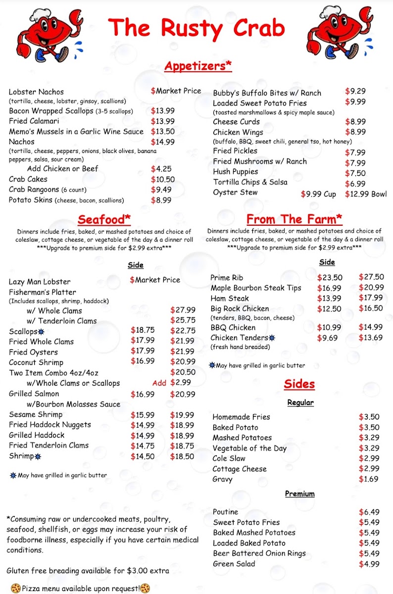 Introducing The Rusty Crab, a delightful culinary gem nestled at 48 Main St, Mars Hill, ME. This eatery takes your taste buds on a memorable journey through an enticing menu that masterfully combines comfort food and seafood specialties.